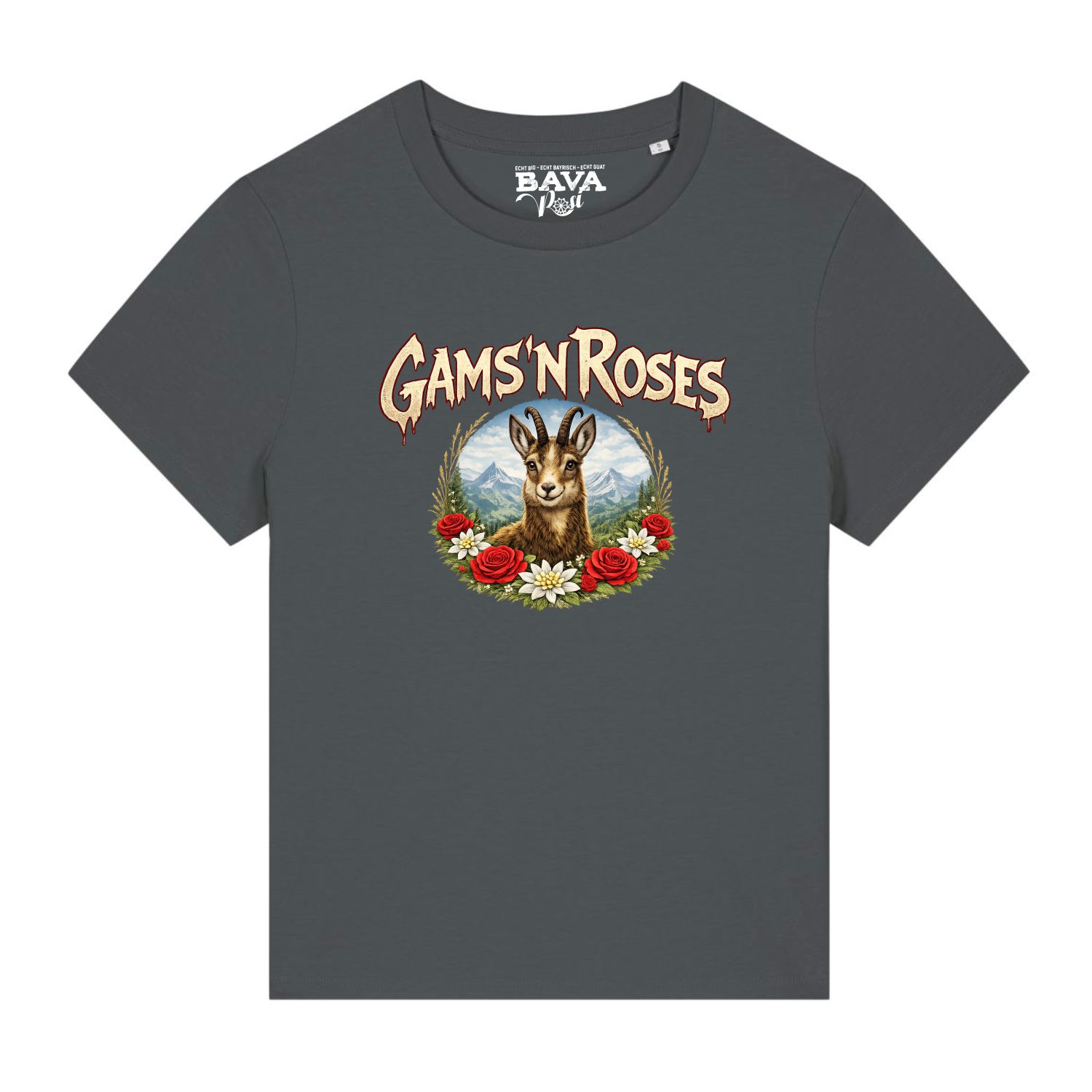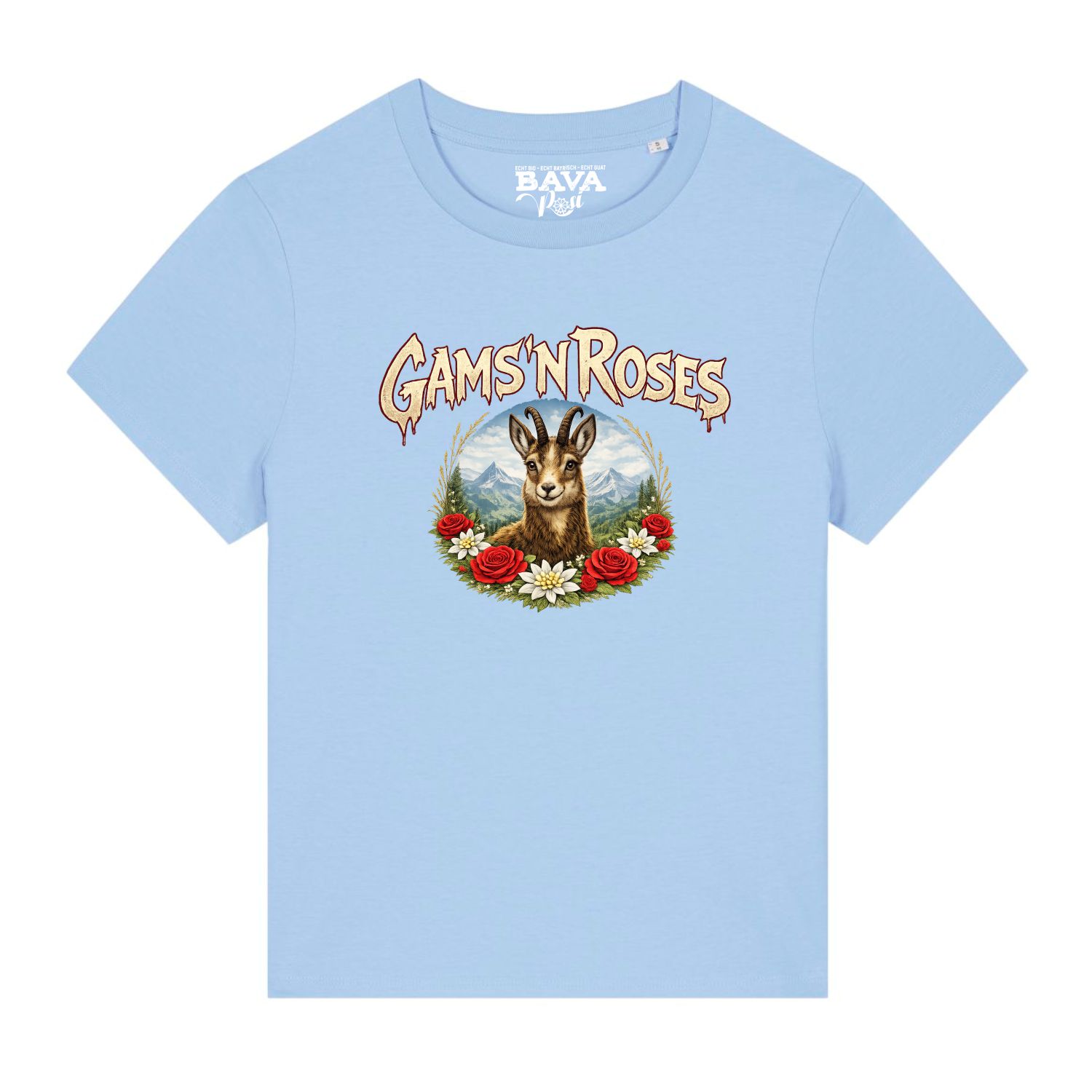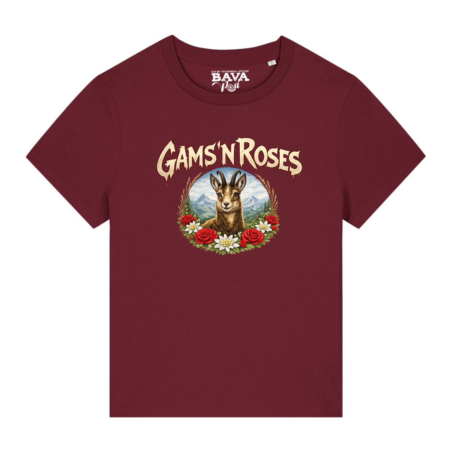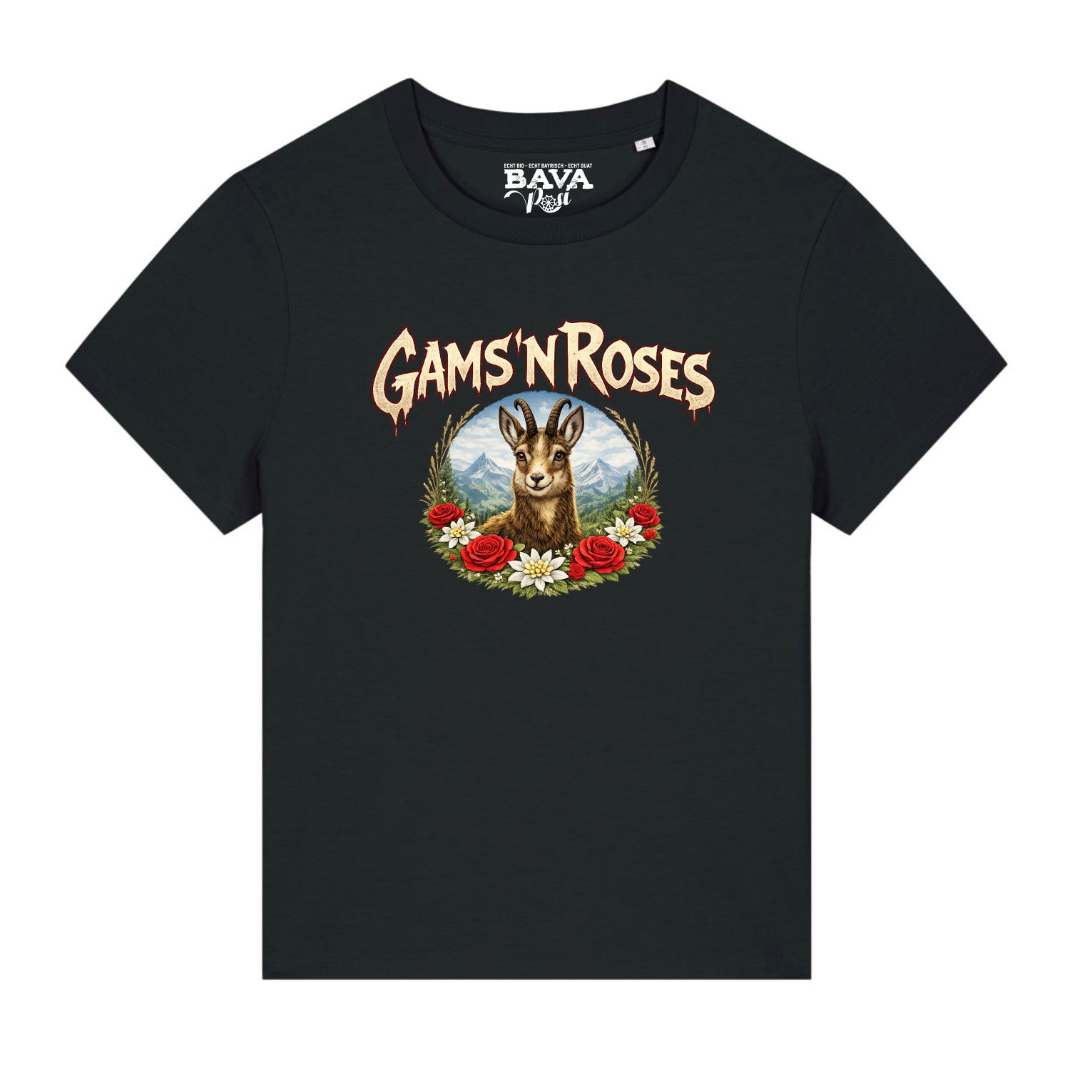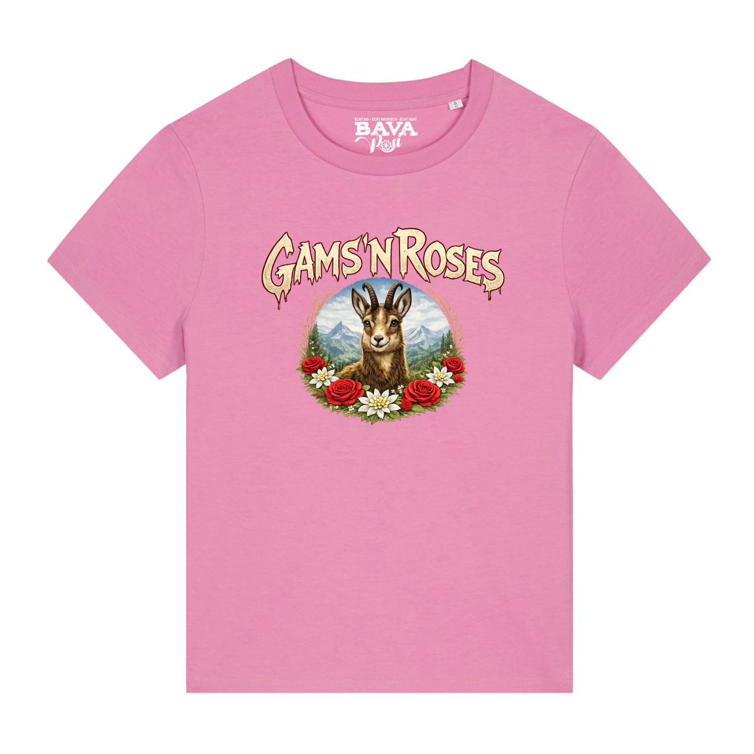 Hier gleich noch die Basics zu unserem bayerischen Gams n Roses Soft Damen Shirt: