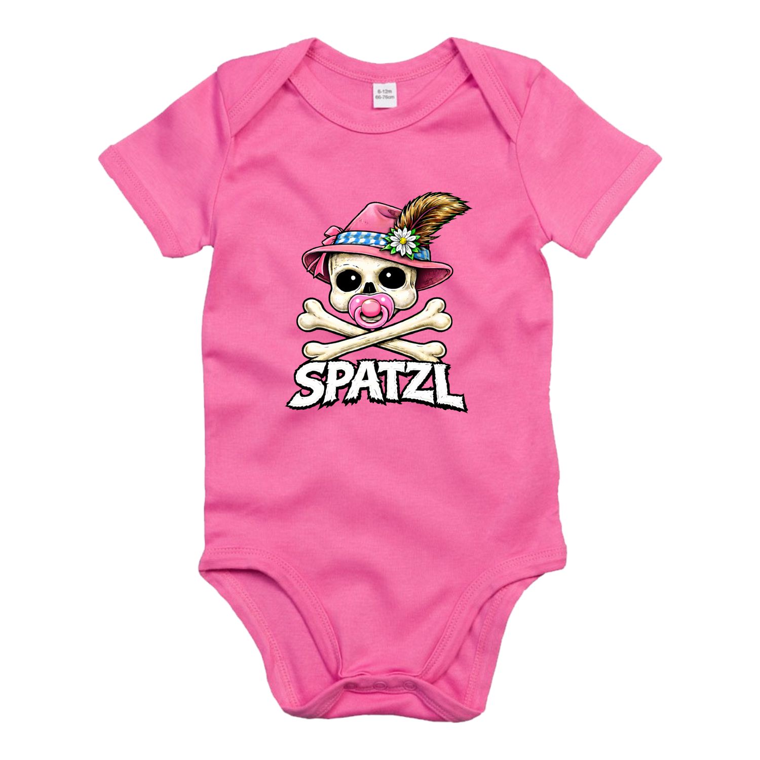 Hier gleich noch die Basics zu unserem bayerischen Spatzl Totenkopf Baby Body:
